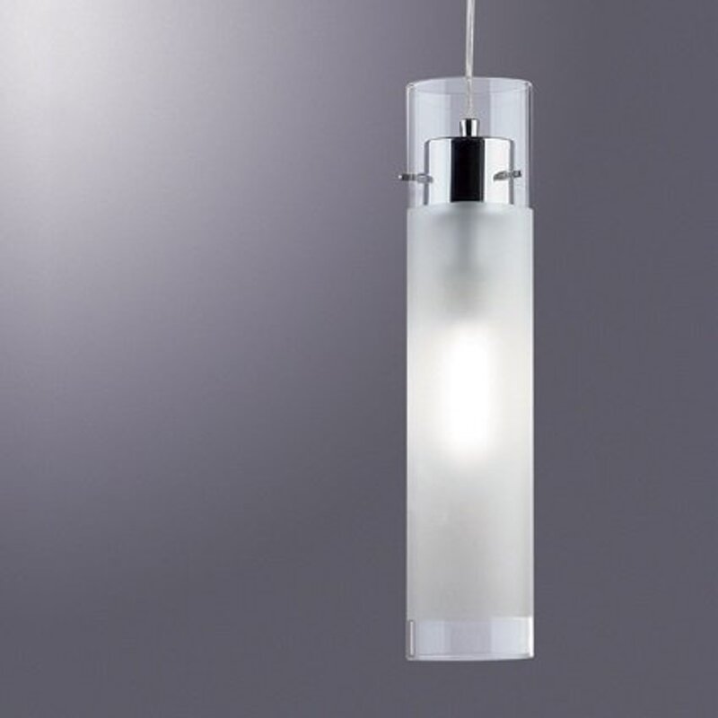 SOSPENSIONE IN VETRO PIREX TRASPARENTE, SMERIGLIATO NELLA PARTE CENTRALE E METALLO CROMATO